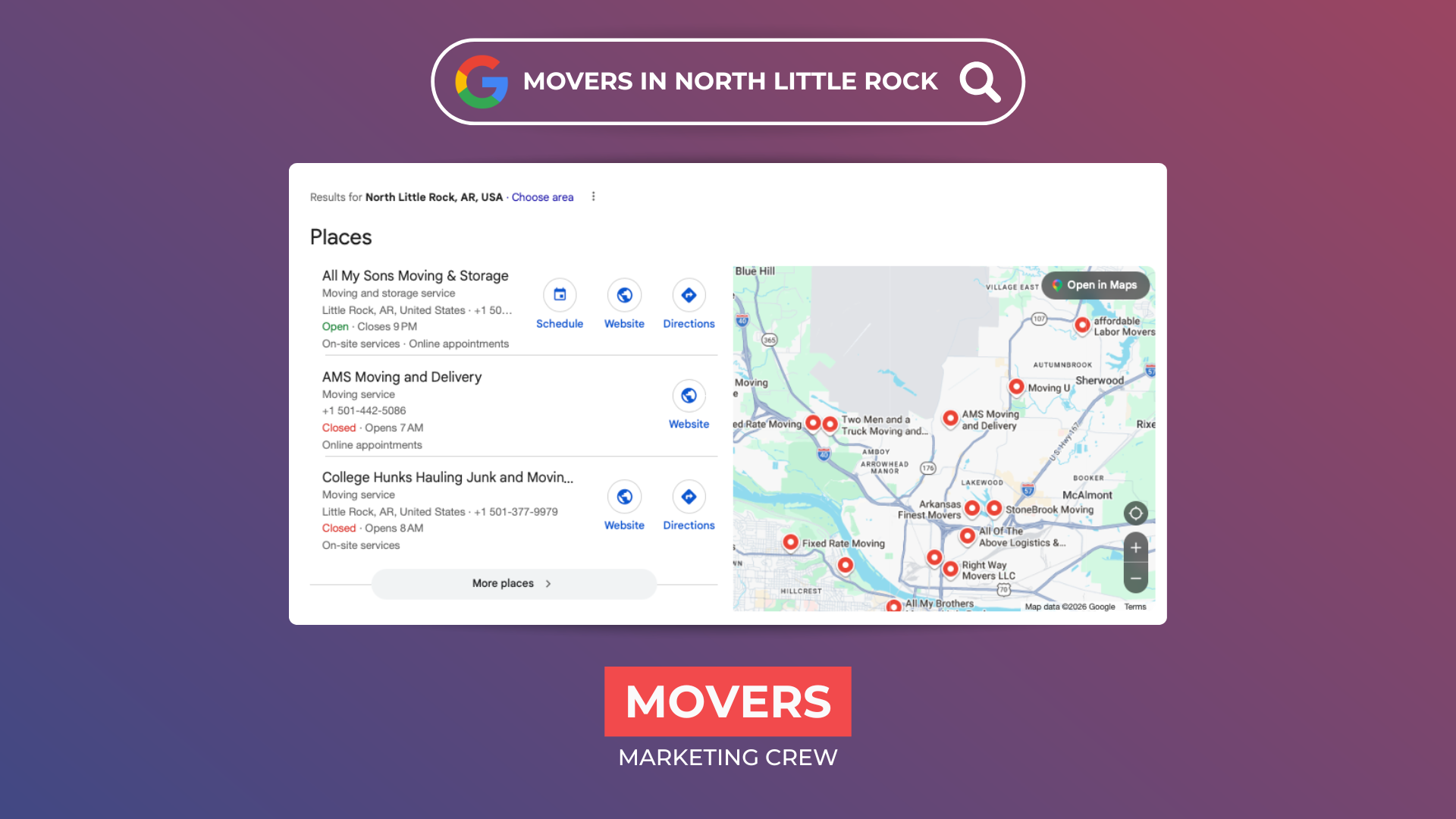 By using an SEO optimized URL, such as websitename.com/movers-in-[area], you are giving one final confirmation for Google that it is the right choice for the user. When all of the above elements are implemented, your page is ready for a local search, satisfying both the Google and the user searching for your service.