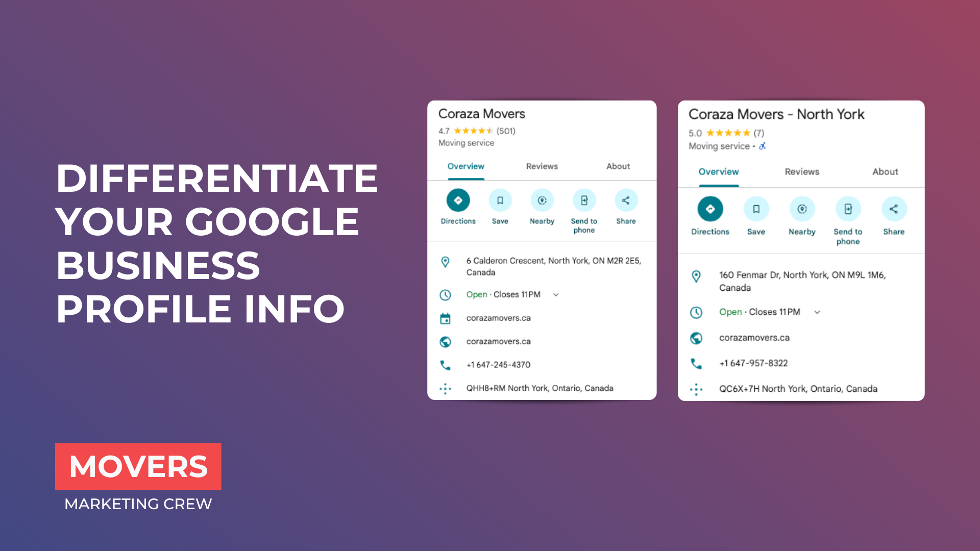 One of the biggest mistakes movers make is creating an identical copy of their first Google Business Profile. To rank effectively, search engines need to clearly distinguish between your two service areas.